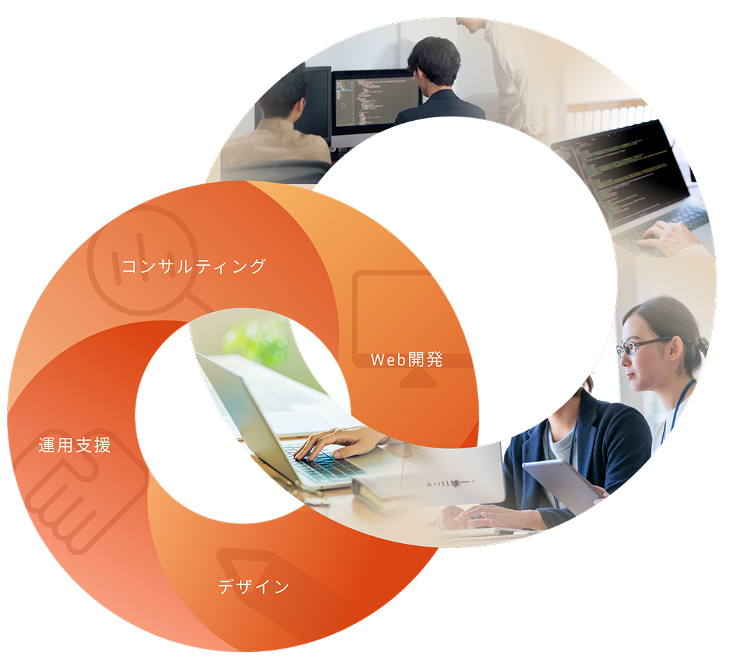 当社では、移り変わりの早いWeb業界で、法人向けのサービスを軸としつつ、